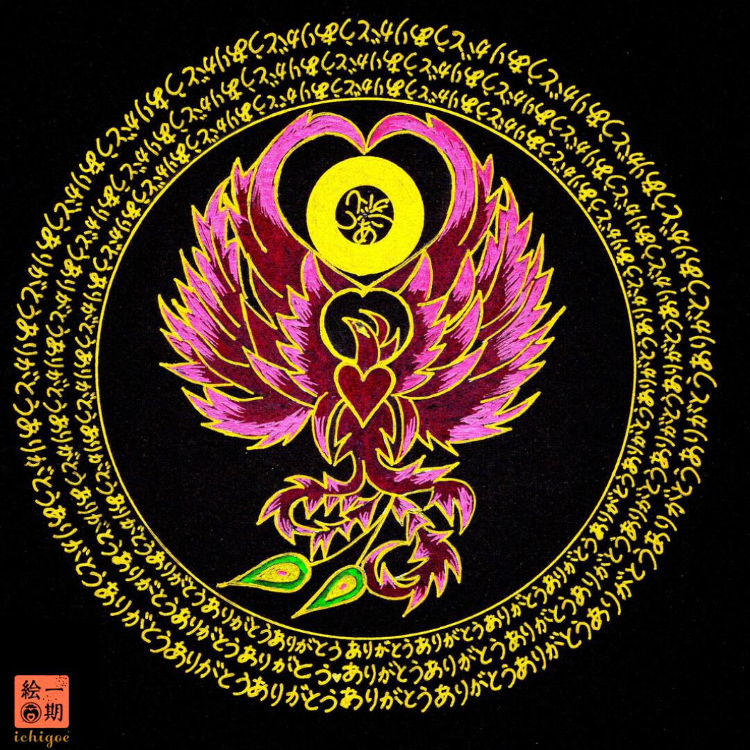 この商品は「繁栄と幸福をもたらす【四神・朱雀】ミニサコッシュ」です!四神の中でも特に朱雀をテーマにしたデザインは、深い意味を持ちながらもシンプルでスタイリッシュな仕上がりが魅力です。バッグの表面には、「ありがとう」の言葉が曼荼羅模様と共に施されており、日常に感謝の気持ちを添える素敵なアイテムとなっています。